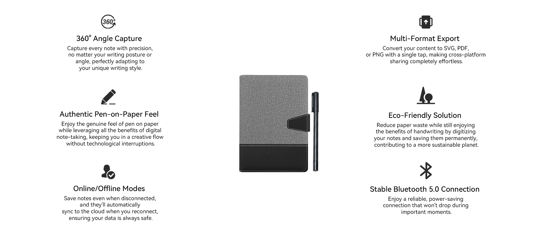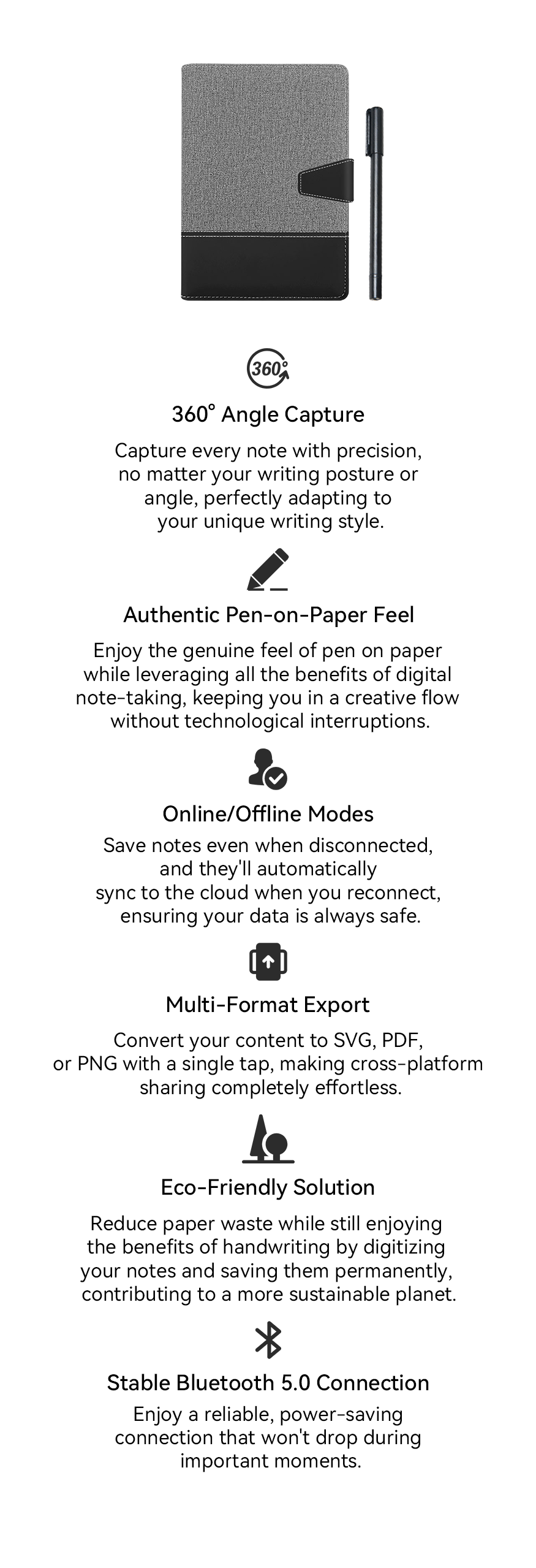 Whether on a plane, in the subway, or far from signal, every thought can be captured with ease. Bluetooth offline saving securely stores up to 50 pages, then syncs automatically when back online—so inspiration is always safe.