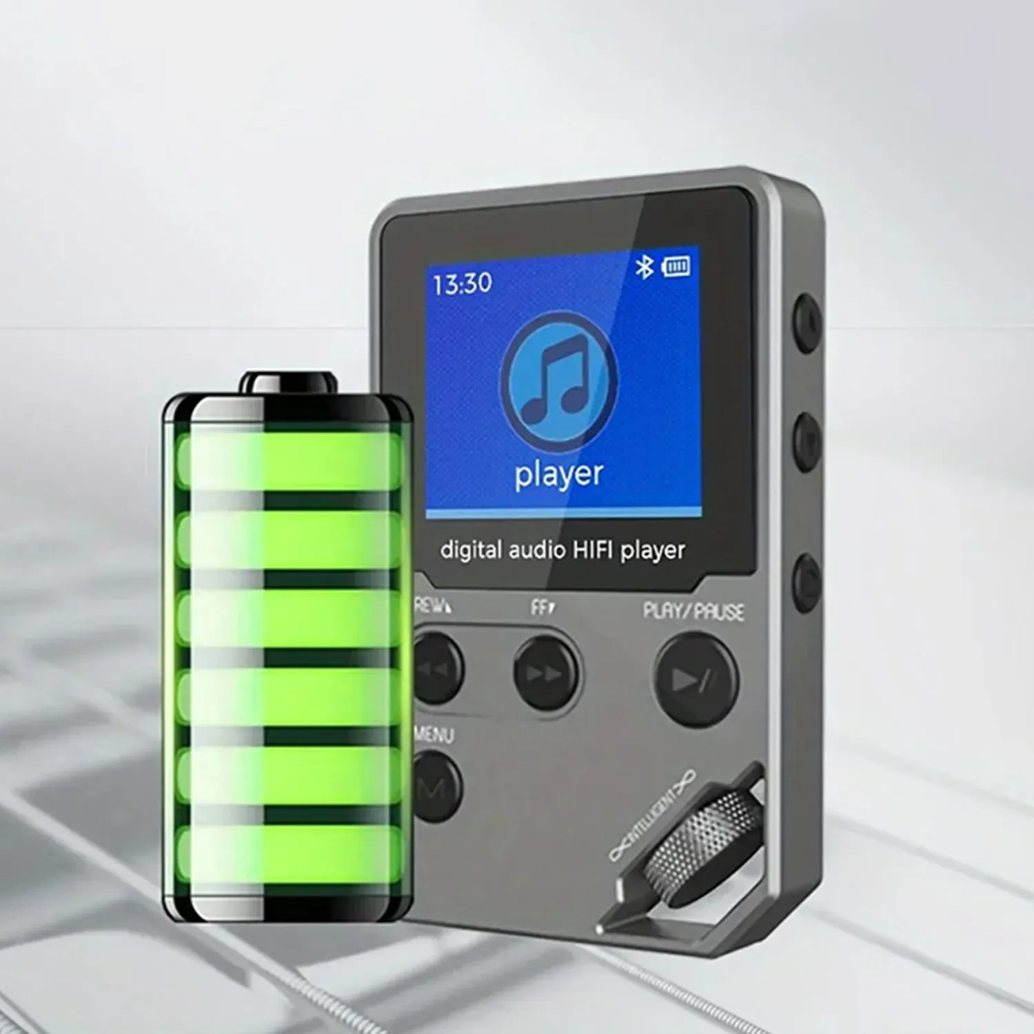 The 1.8-inch TFT color display features excellent brightness and contrast, making it clearly visible even in bright outdoor sunlight conditions for easy navigation and song selection anytime.